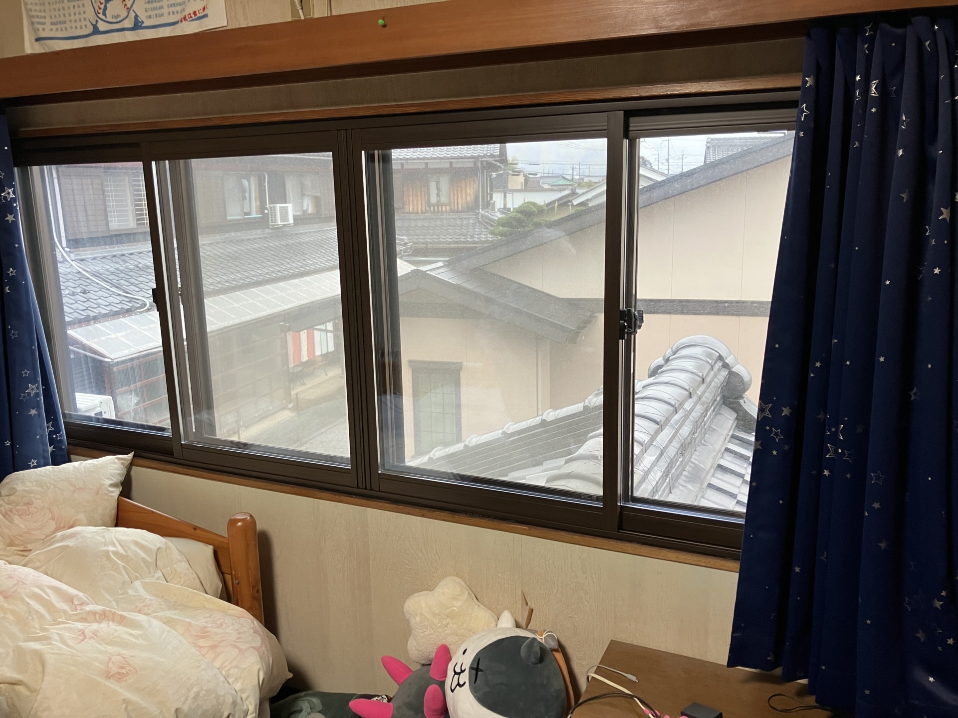 アルミ枠の単板ガラス窓は結露もすごく出るし外気の影響をすごく受けるので、今回は寝室と趣味で使われてる部屋に内窓を設置しました!