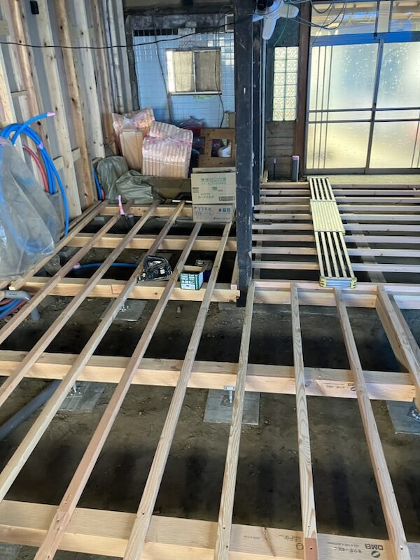 解体が終わったところに床を作るための下地を入れていきます。