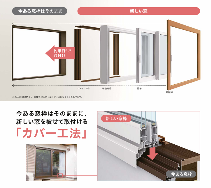 カバー工法は今のサッシの枠に次のサッシの枠をかぶせて施工するので外壁を補修する必要がありません