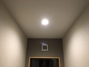 壁には換気扇を設置し、照明は蛍光色のダウンライトを☆