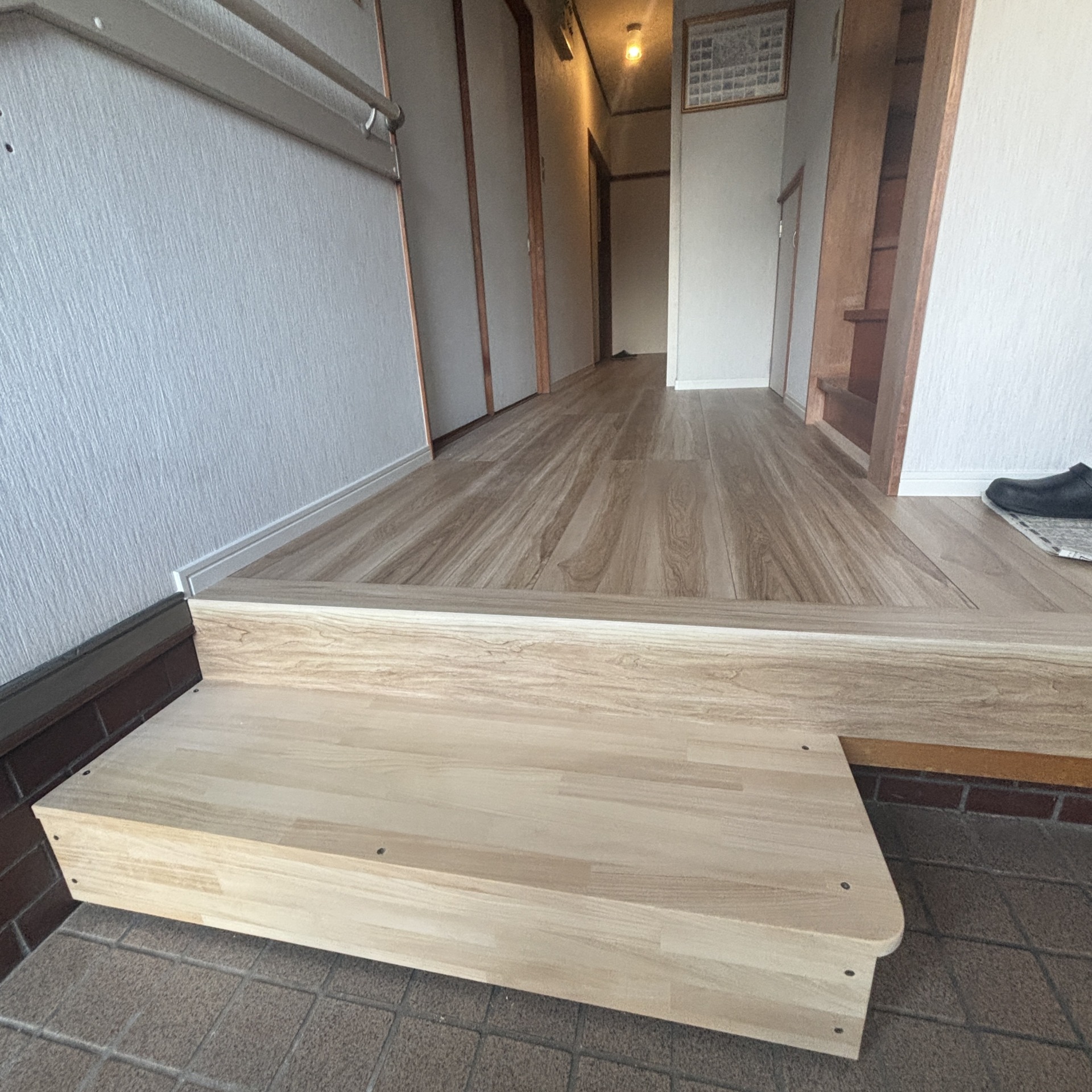 今回は廊下の段差と玄関の登り下りがしやすいように踏み台を作りたいとご相談いただきました。