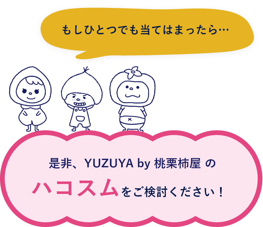 もしひとつでも当てはまったら…是非、YUZUYA by 桃栗柿屋にご相談ください!